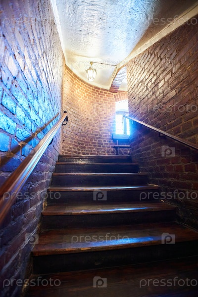 Лестницы внутри укрепленной древней башни или форта. Оборона и военное дело в средние века