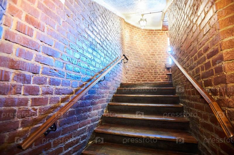 Лестницы внутри укрепленной древней башни или форта. Оборона и военное дело в средние века