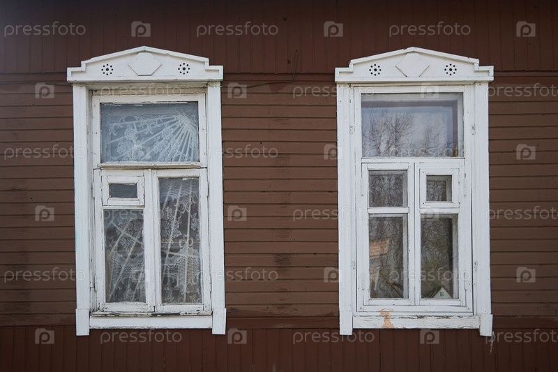 Окна старого деревянного дома. Славянская или балканская культура