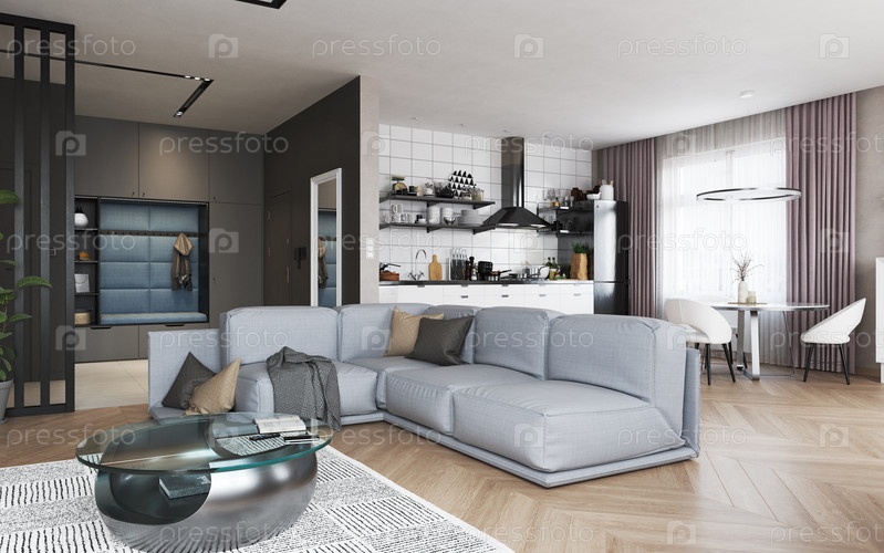 3D-иллюстрация современного интерьера квартиры