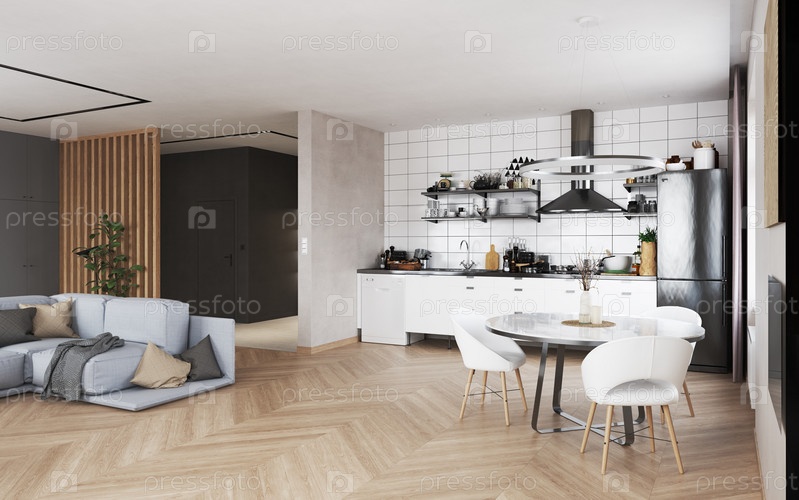 3D-иллюстрация современного интерьера квартиры