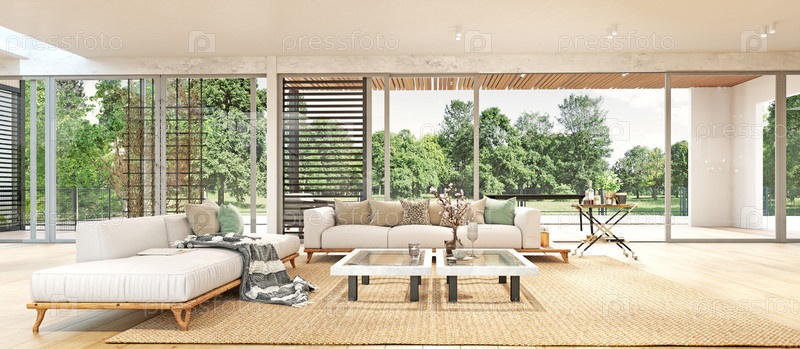 Современный роскошный интерьер дома (3d иллюстрация дизайна)