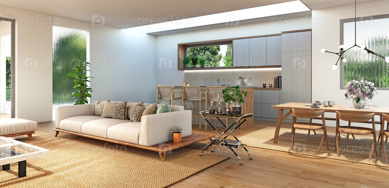 Гостиная в современном роскошном стиле. 3D визуализация дизайна
