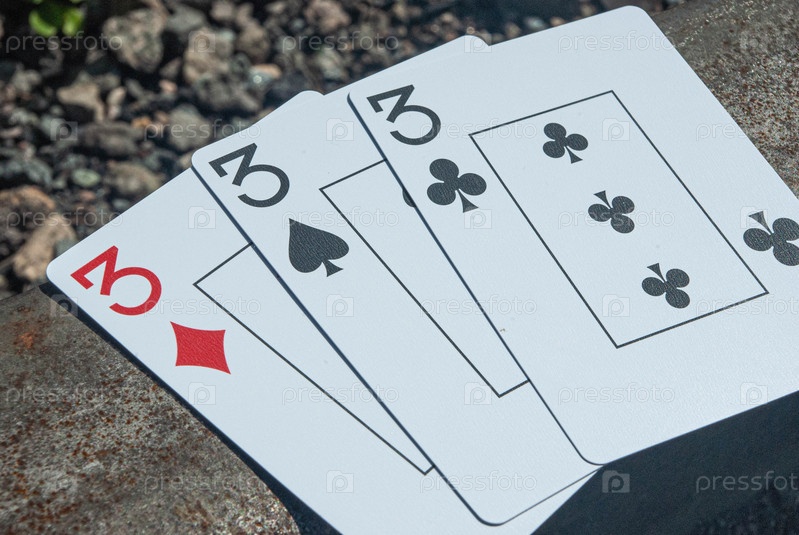 Покерные карты, набор комбинаций, на железнодорожной шпале