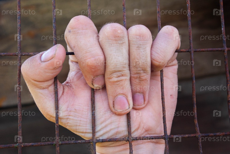 Рука держится за решетку, рабство, безысходность, заточение