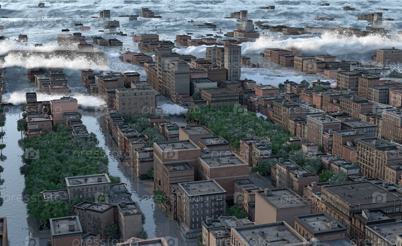 Наводнение города стихийным бедствием.Концепция 3D-рендеринга