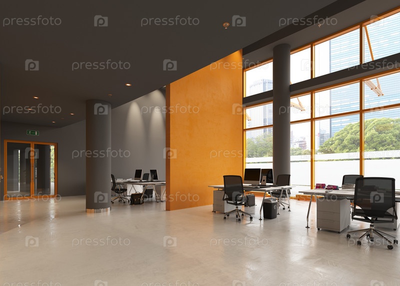 Современный дизайн интерьера офиса.Концепция 3D-рендеринга