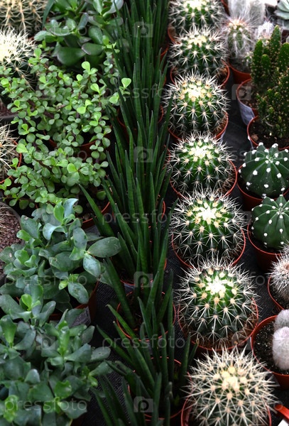 Различные виды кактусов крупным планом