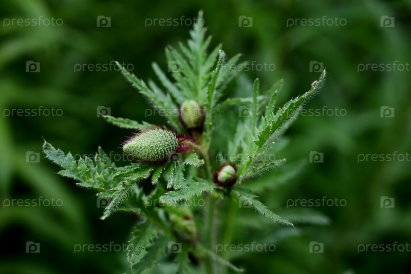 Нераспустившийся бутон цветка мака крупным планом