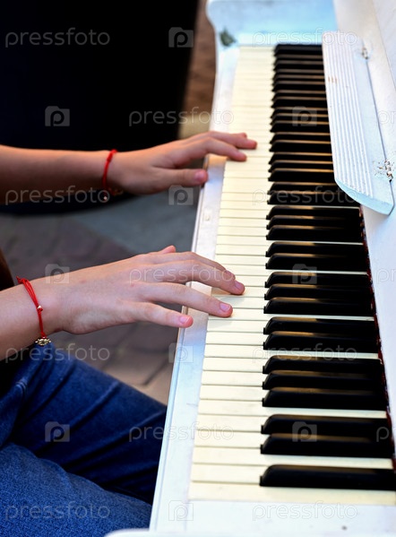 Женские руки играют на пианино