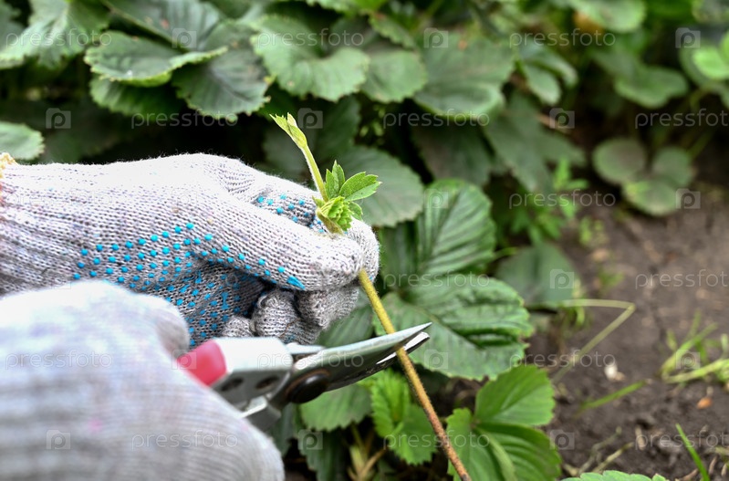 Первые молодые листья клубники. Антиоксидант. Травяной чай. Крупный план новых листьев. Размытый фон