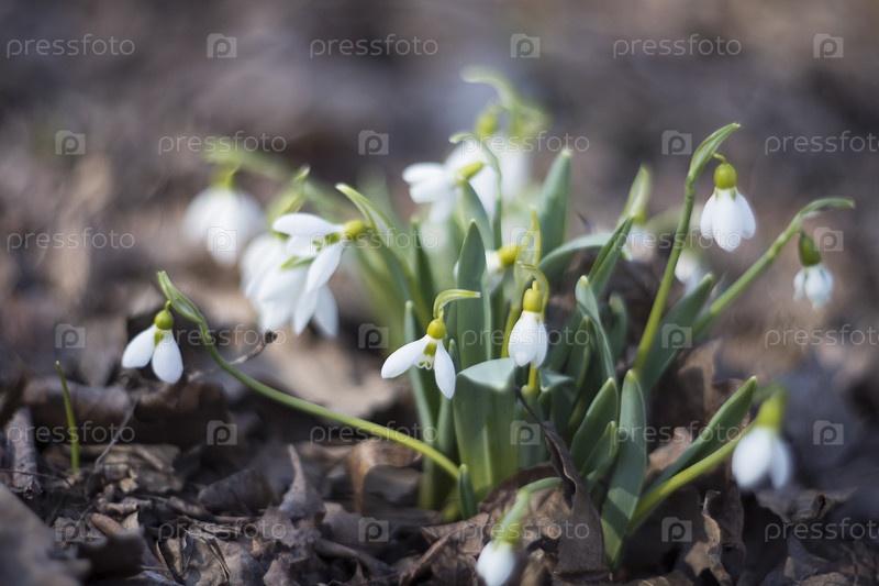 Нежные подснежники в весеннем лесу