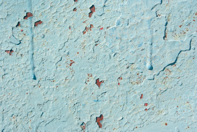 Фон, вид сверху, старая потрескавшаяся, окрашенная поверхность, облупившаяся краска