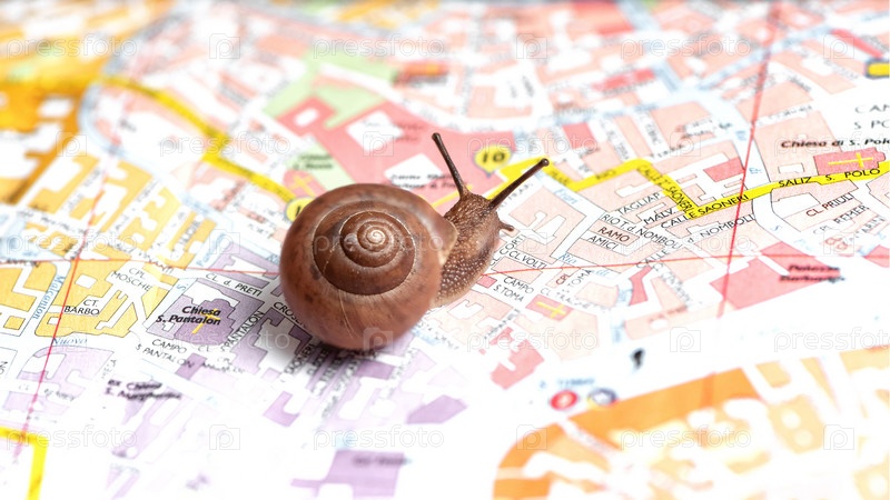 Маленькие улитки ползают по карте города