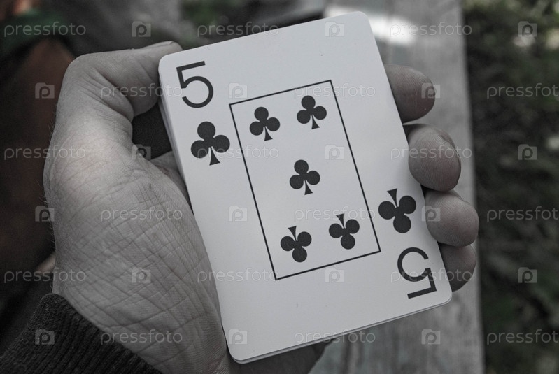 Покерная карта в руке на фоне травы