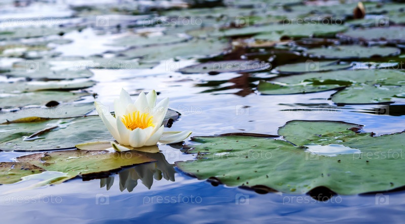 Белая лилия на воде. Цветок лилии в озере