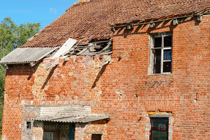 Старый разрушенный дом. Дом из красного кирпича