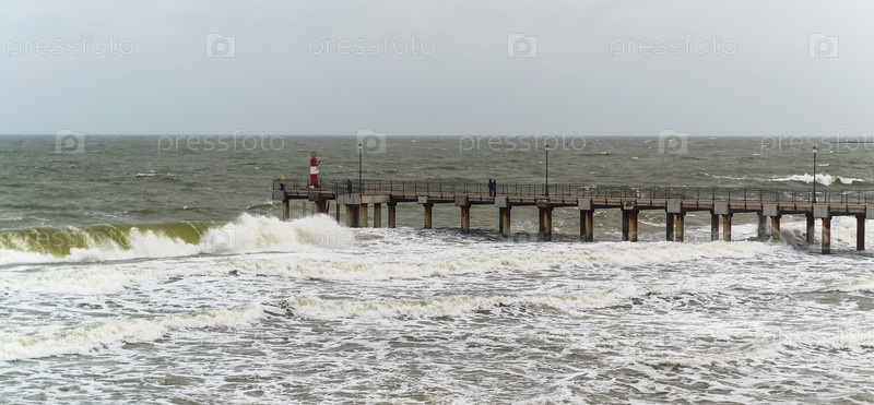 Приливы и штормы на море. Морской пирс. Волны на Балтийском море. Пустынный берег моря