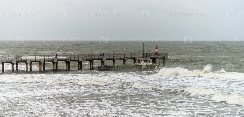 Приливы и штормы на море. Морской пирс. Волны на Балтийском море. Пустынный берег моря