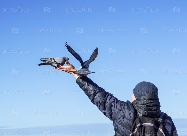 Птицы сидят на руках человека. Голуби сидят на руке человека