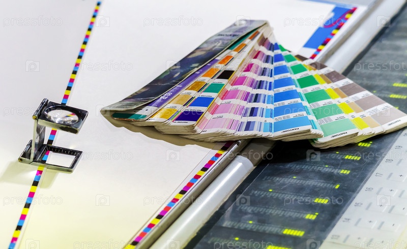 Веер цветов для принтера. Палитра инструментов типографики. Выбор цвета офсетной печати