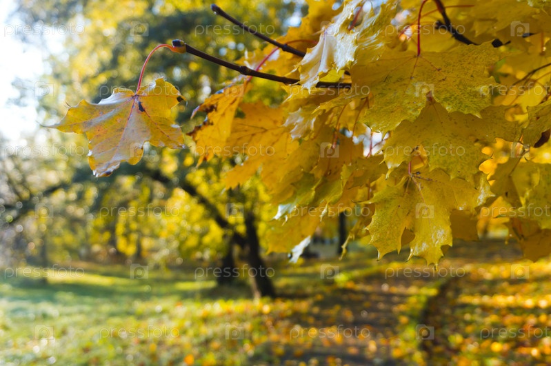 Осенний лес, осень в парке, желтые и красные листья на деревьях осенью