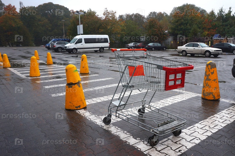 Тележка для покупок, корзина для товаров из магазина на парковке