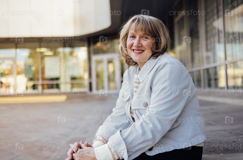 Старшая женщина в белой куртке улыбается и смотрит в камеру