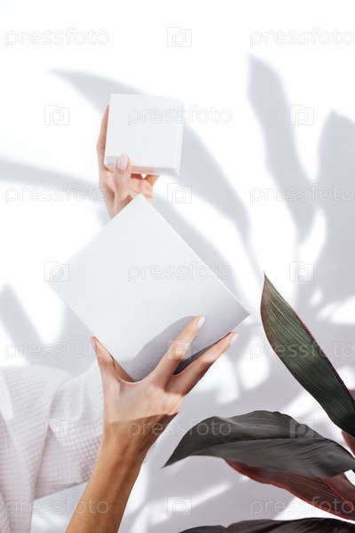Женщина в белом халате заботится о своей коже и увлажняет лицо сывороткой