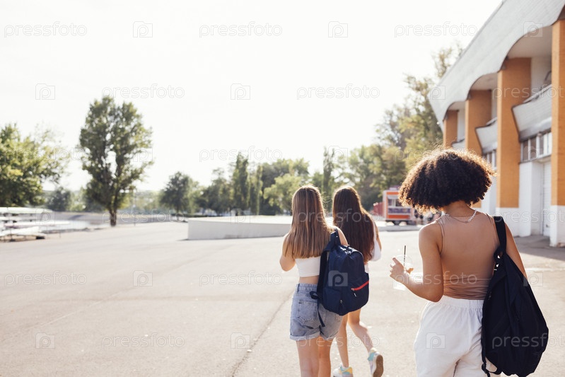 Группа подростков разных национальностей и внешности вместе развлекается