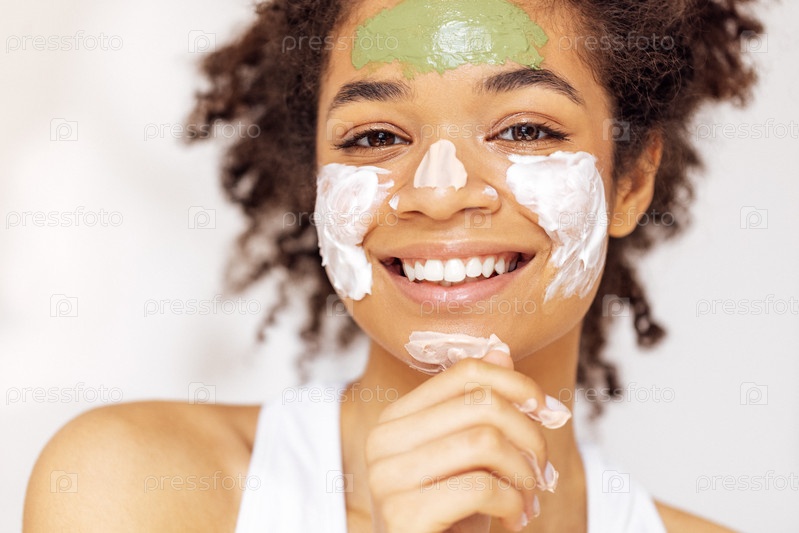 Прекрасная очаровательная молодая женщина заботится о своей коже лица. Косметика и концепция красоты