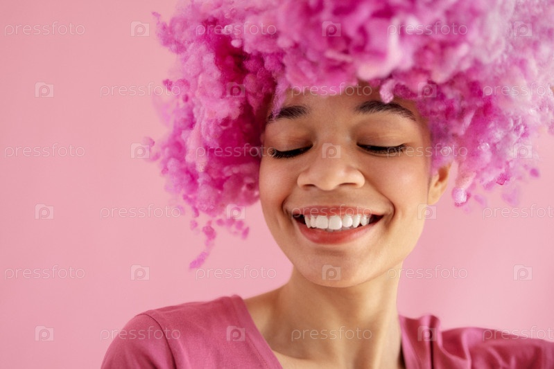 Крупным планом студийный портрет привлекательной милой веселой женщины африканского происхождения с красивой белозубой улыбкой