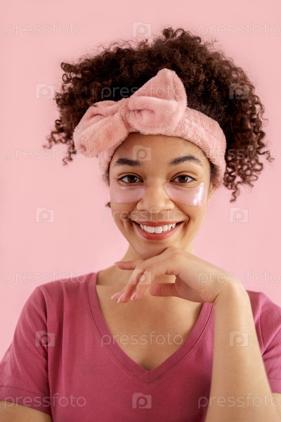 Улыбающаяся привлекательная девушка смешанной расы с чистой кожей и розовыми пятнами под глазами