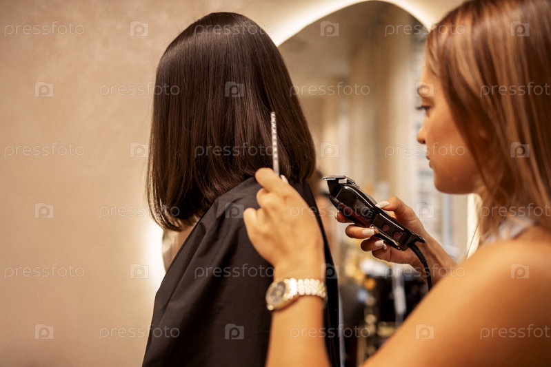 Девушка брюнет в современном женском парикмахере