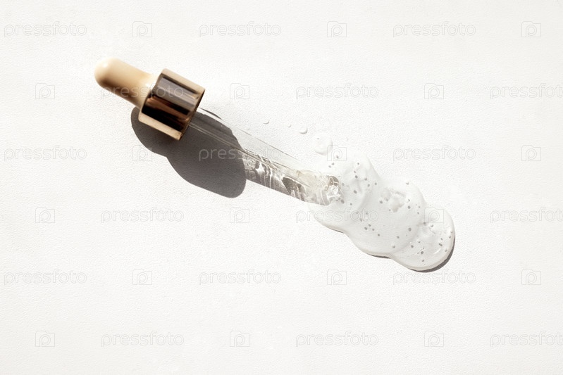 Крупным планом прозрачная сыворотка или масляное стекло макет на бутылке на светлом фоне