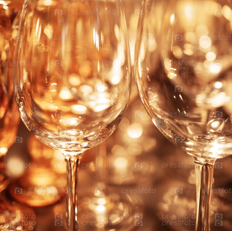 Чрезвычайно крупный план пустых бокалов шампанского подряд