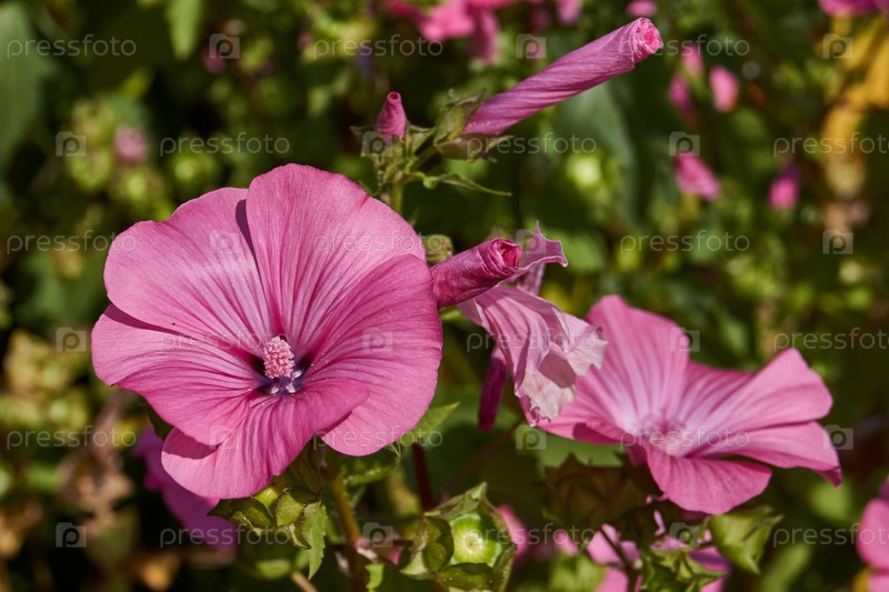 Лаватера цветет на лужайке в саду.Последние цветки лаватары перед наступлением холода