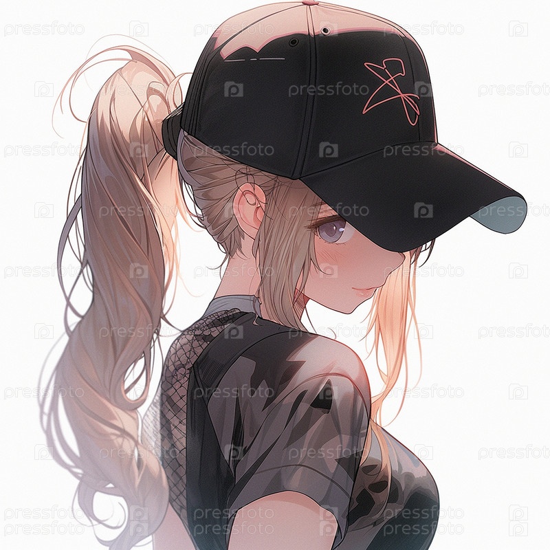 Девушка в бейсболке в стиле аниме