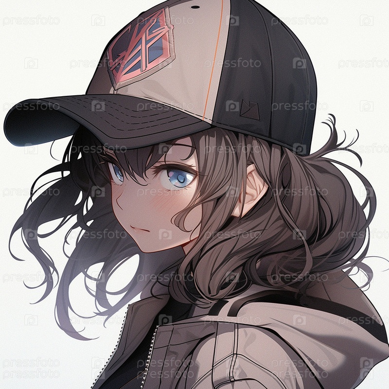 Девушка в бейсболке в стиле аниме