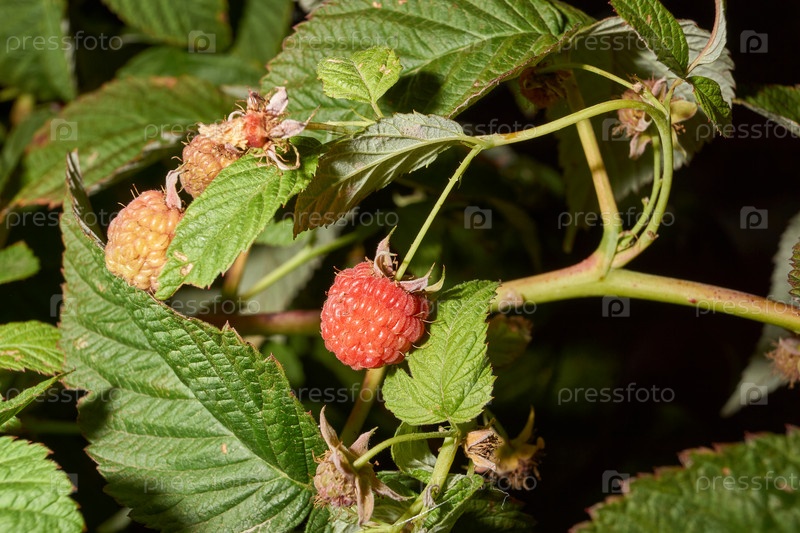 Ягоды малины. На садовом участке созрела малина. Поздняя осень
