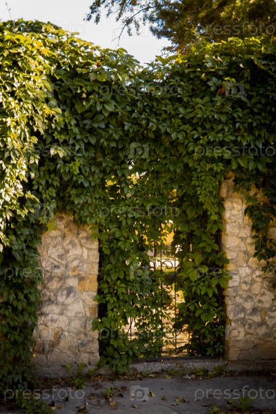 Арка, увитая плющом, с кованной дверью