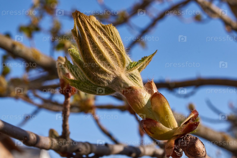 Весна. Бутоны каштана цветут на городской площади