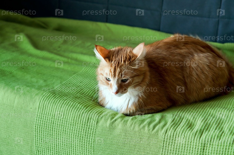 Пушистый домашний кот. Рыжий кот дома отдыхает. Рыжий кот