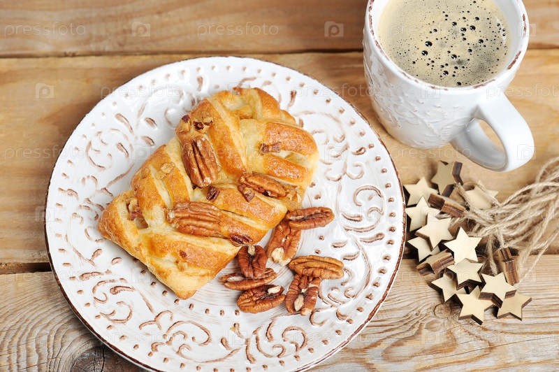 Завтрак с ореховым пирогом и кофе