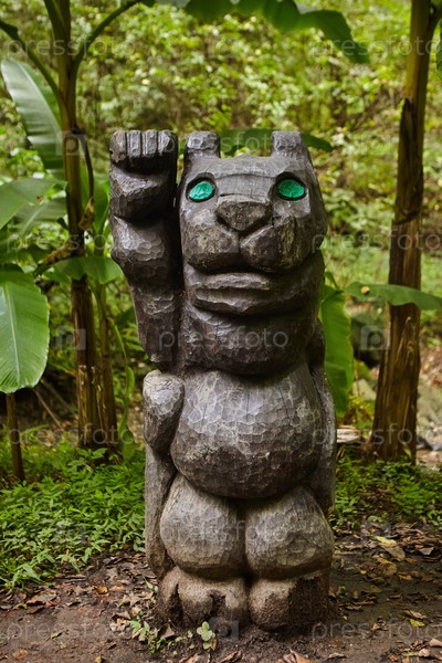 Сочи, Россия - 7 октября 2021 г.: Старая деревянная статуя в виде кошки. Искусство 20 века
