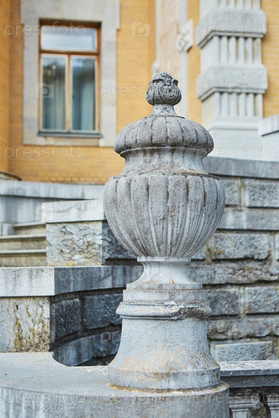 Массандра, Крым - 19 мая 2019 г.: Каменные детали архитектуры древнего дворца в Крыму