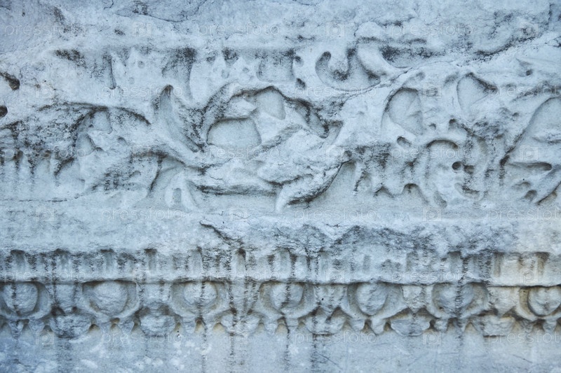 Древняя каменная плита древнегреческих времен с узором или барельефом, крупным планом
