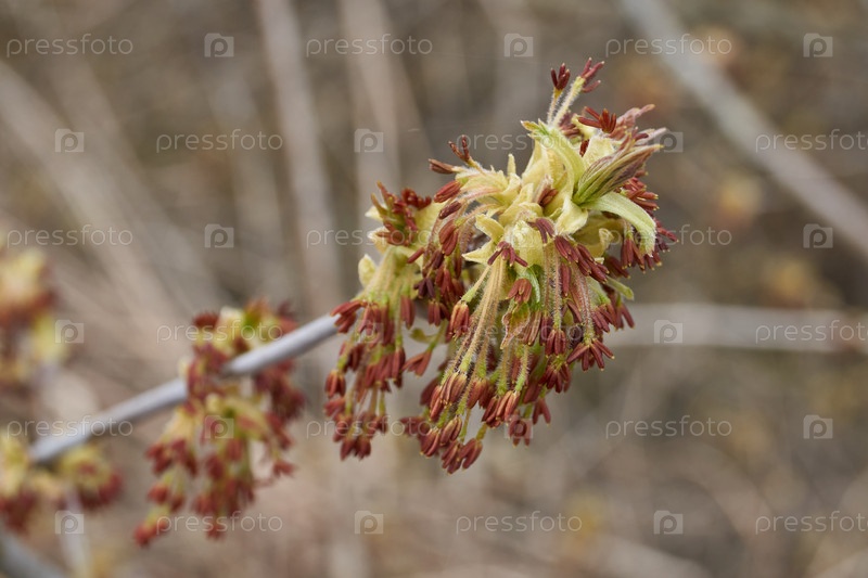 Цветение ясеньколистный кленовый, или американский клён (лат. Acer negundo), соцветия распускаются Весной