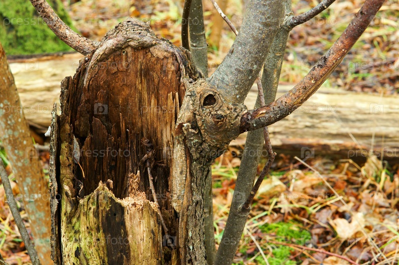Дерево в лесу старое сломанное мокрое упавшее