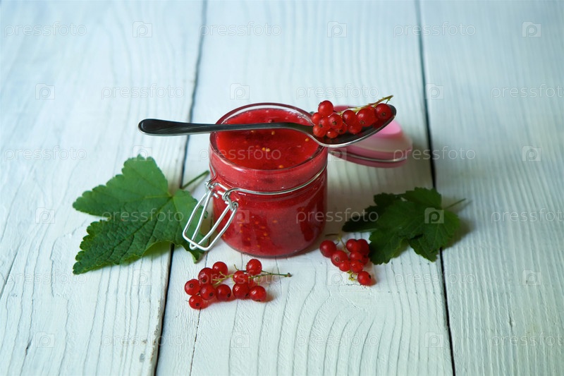 Стеклянная банка варенья из красной смородины